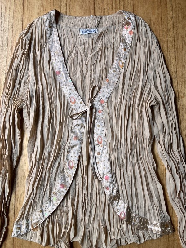 Blusa liviana con cierre y detalles fantasía