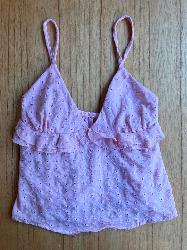 Top de algodón color rosa pastel con tiras regulables y elástico en espalda