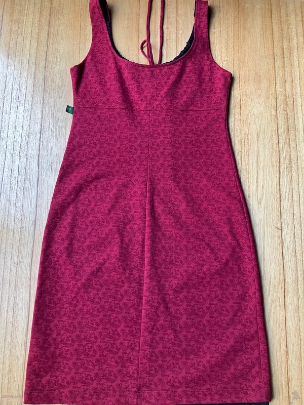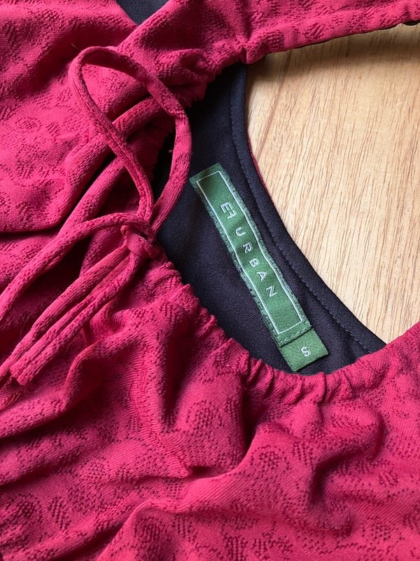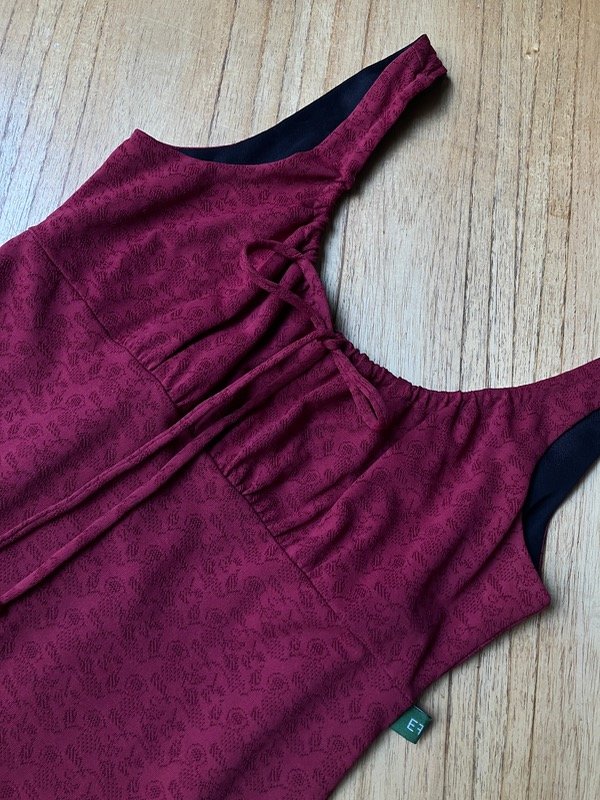 Vestido vintage de encaje bordo con detalle de frunce en el escote