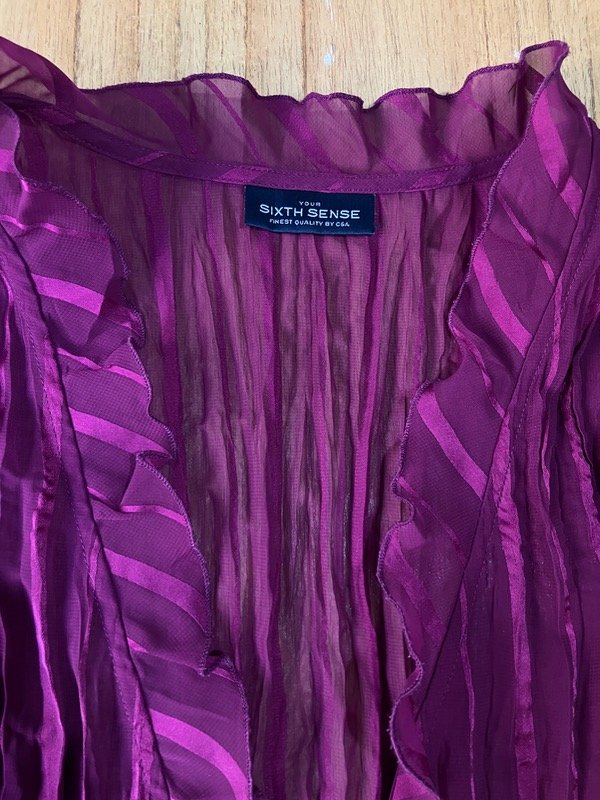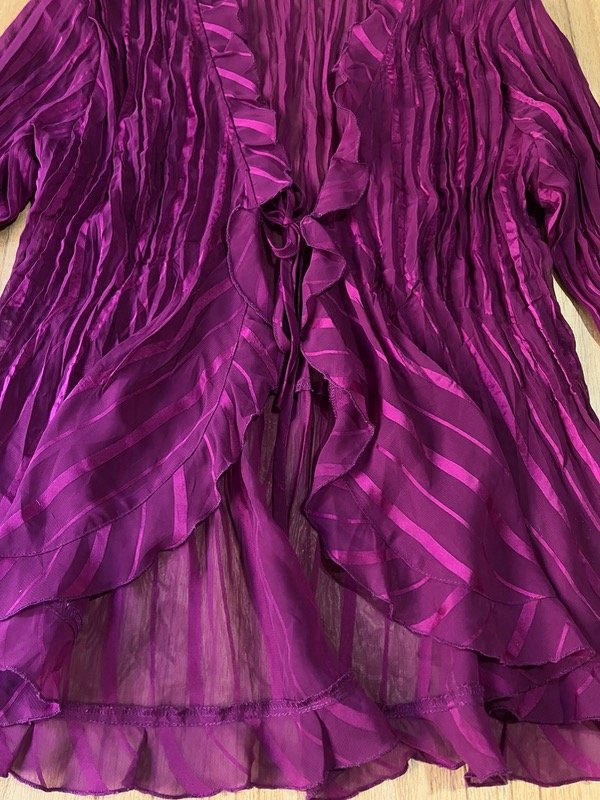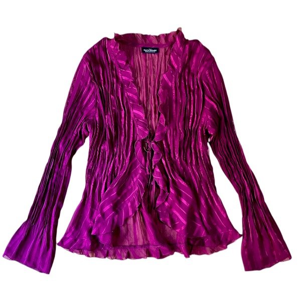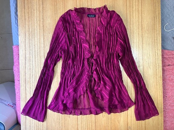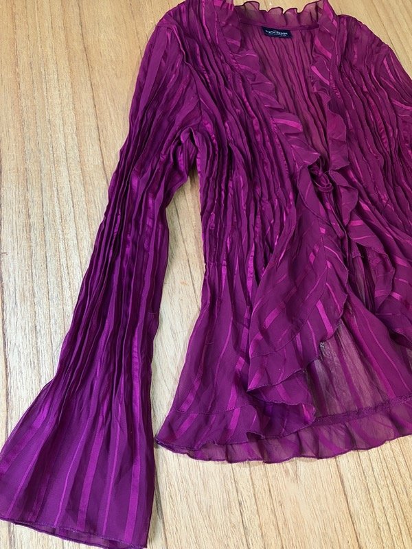 Blusa de gasa color rosa oscuro con cierres en dorso y mangas amplias