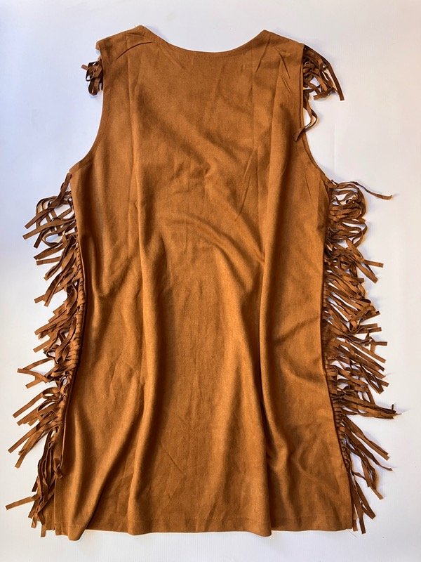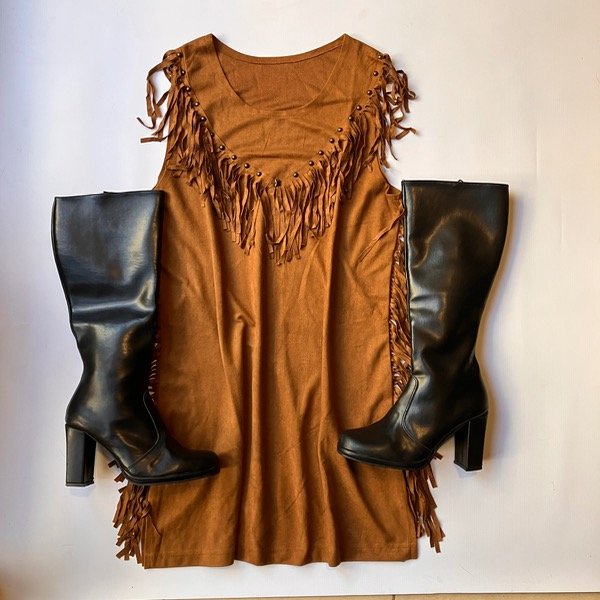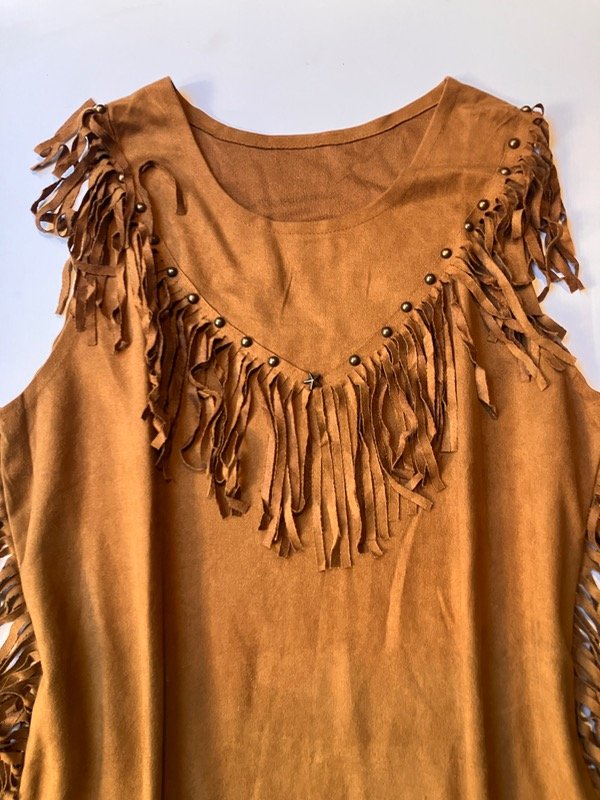 Vestido corto elastizado símil gamuza con flecos y tachas