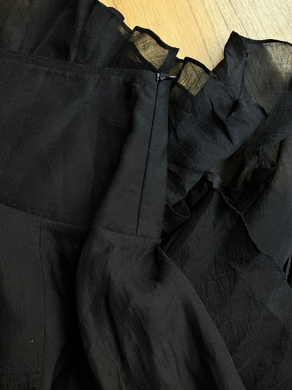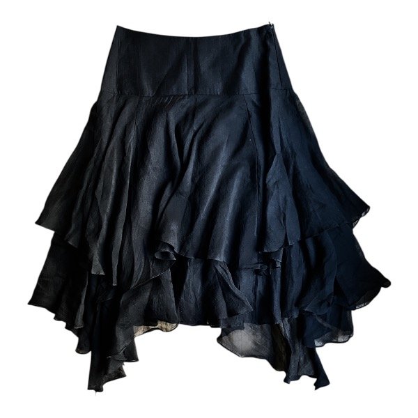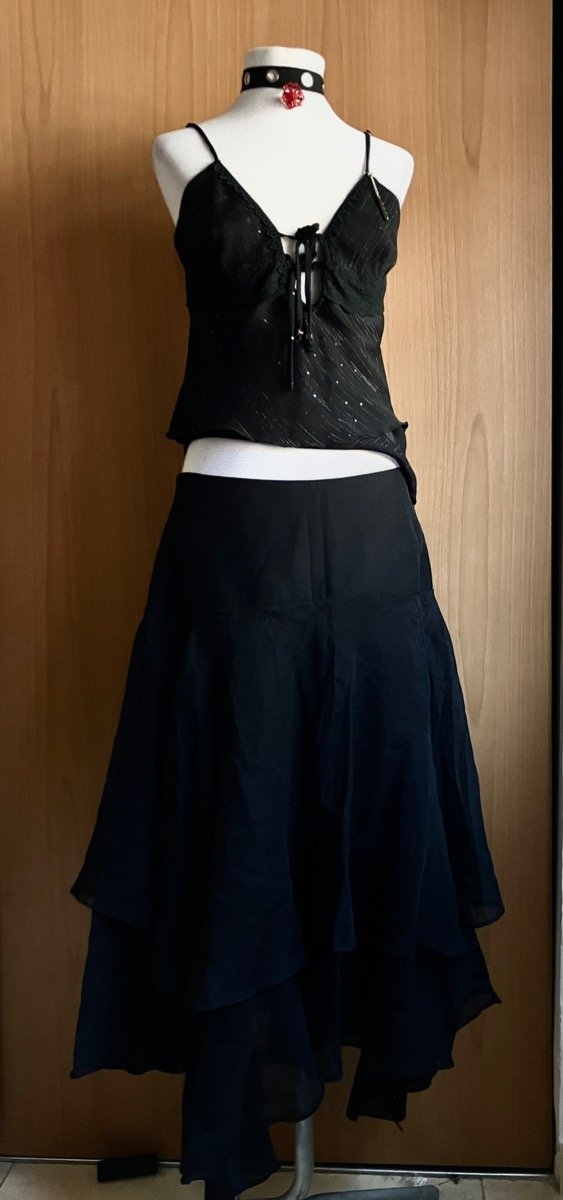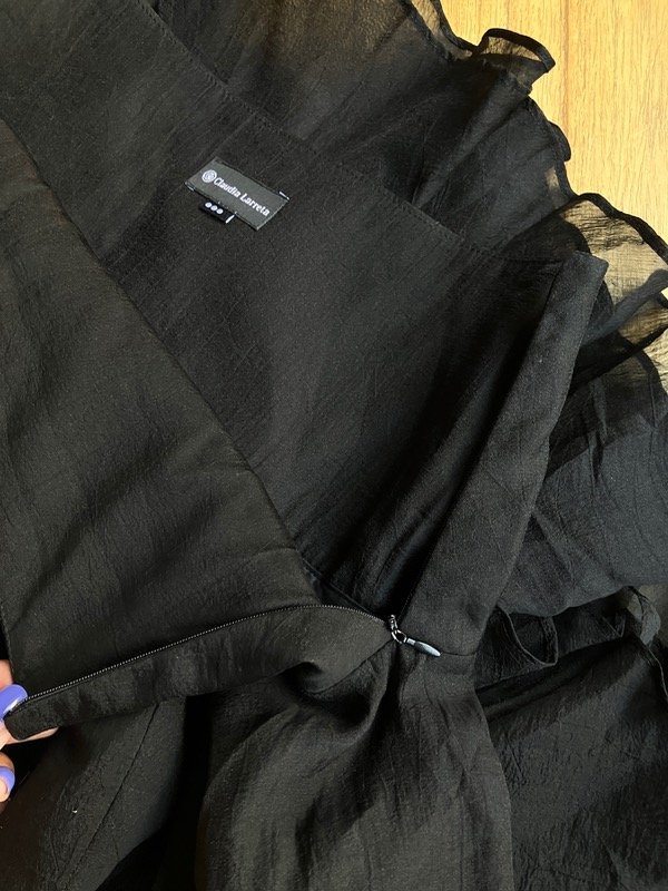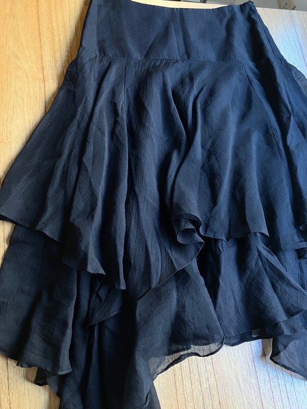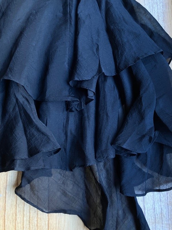Falda color negra con cierre lateral en capas y caída irregular, un sueño!
