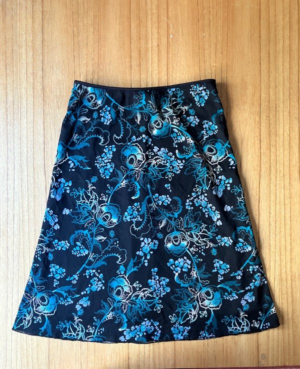Falda vintage USA estampada color negra con tonalidades blancas y turquesas