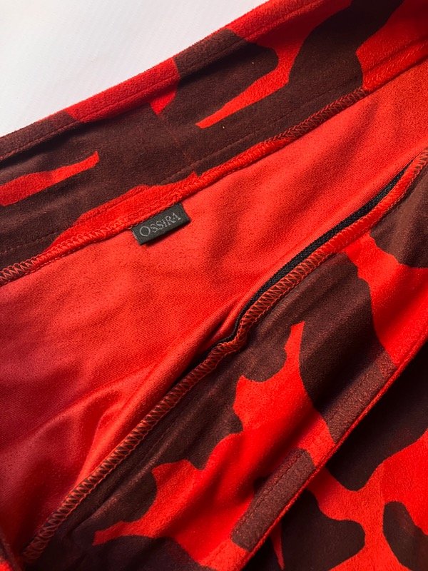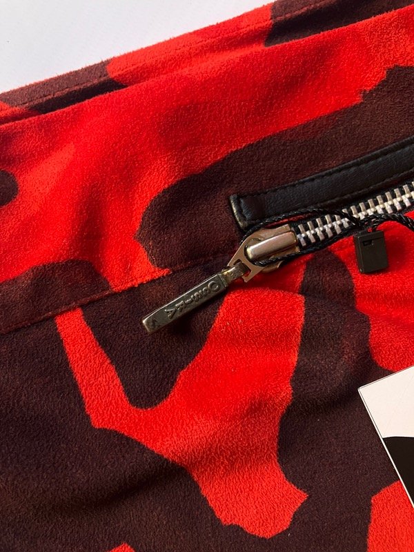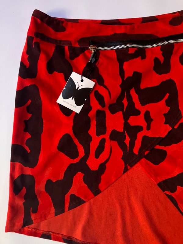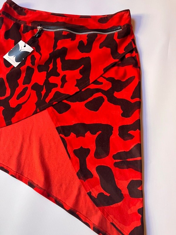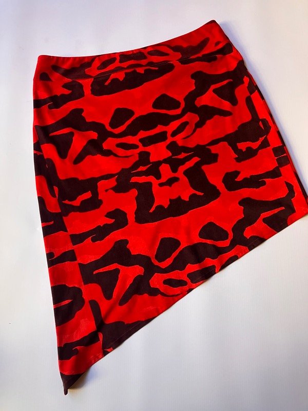 Pollera midi tiro bajo de terciopelo con caída irregular y detalle de cierre
