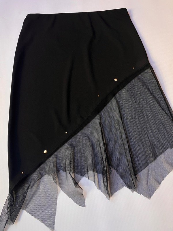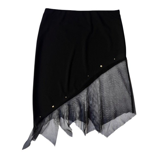 Pollera elastizada color negra con elástico en cintura y microtul en largo