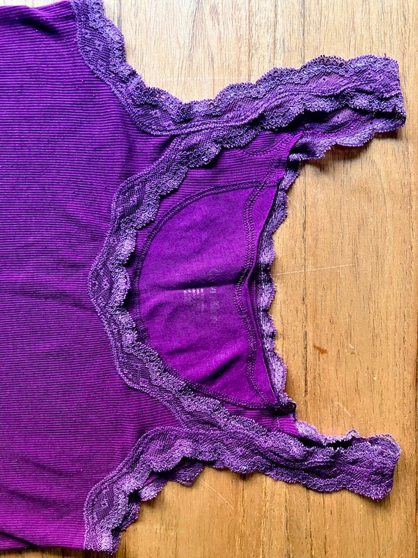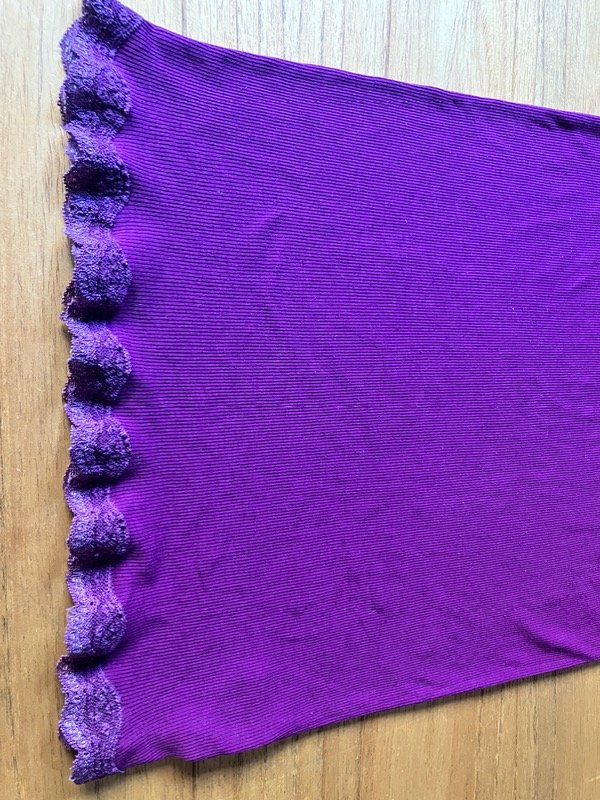 Remera de morley larga al cuerpo color violeta con detalles de encaje