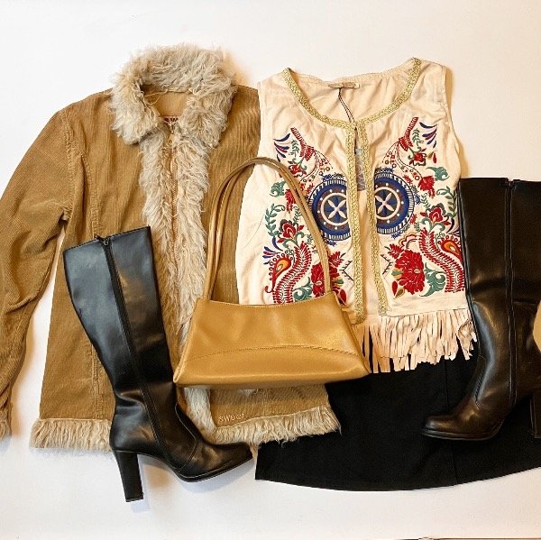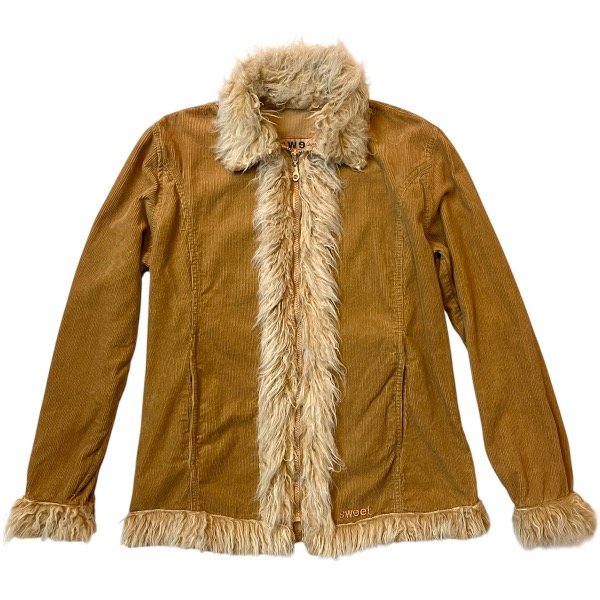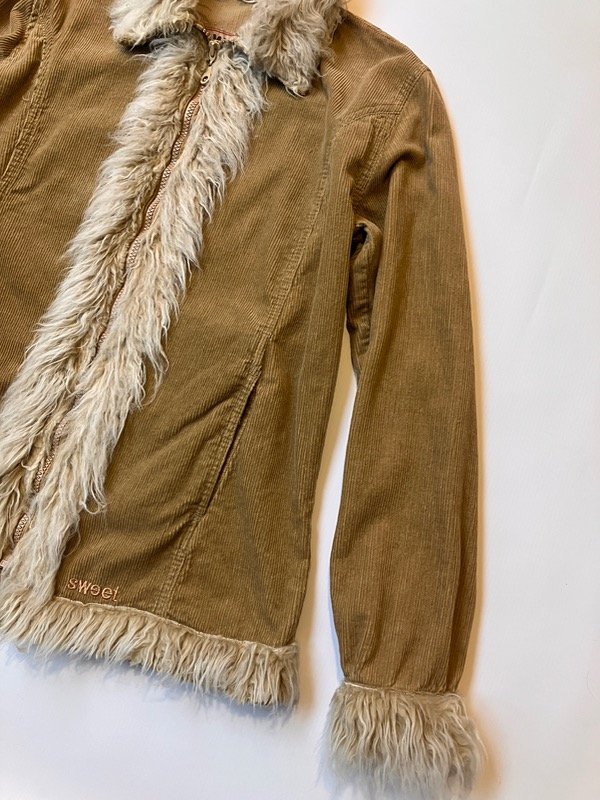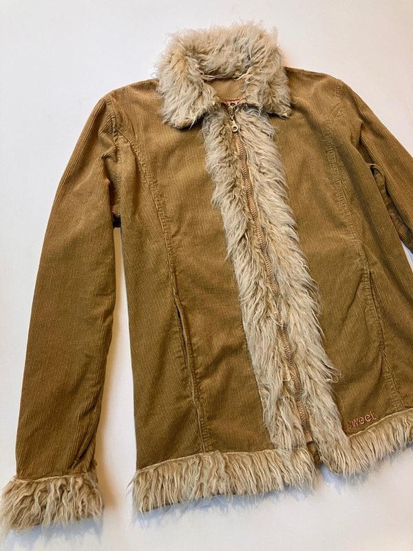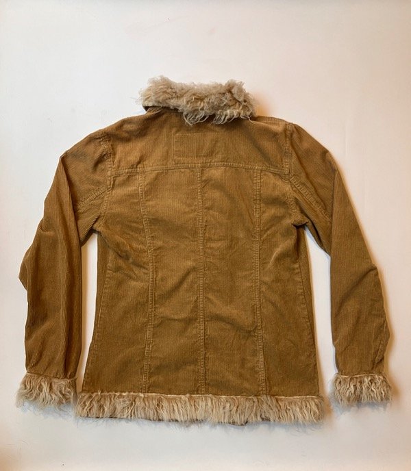 Tapado liviano estilo afgano de corderoy color mostaza y piel sintética