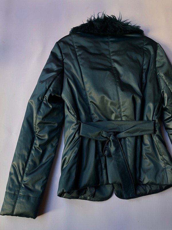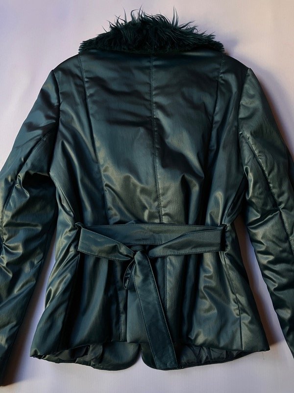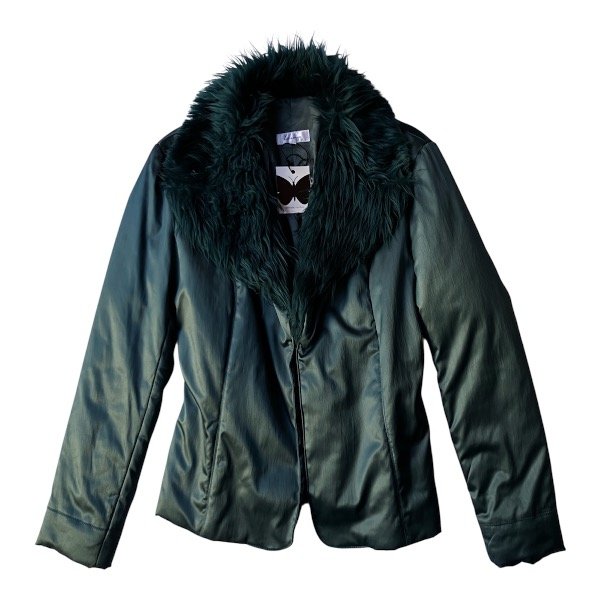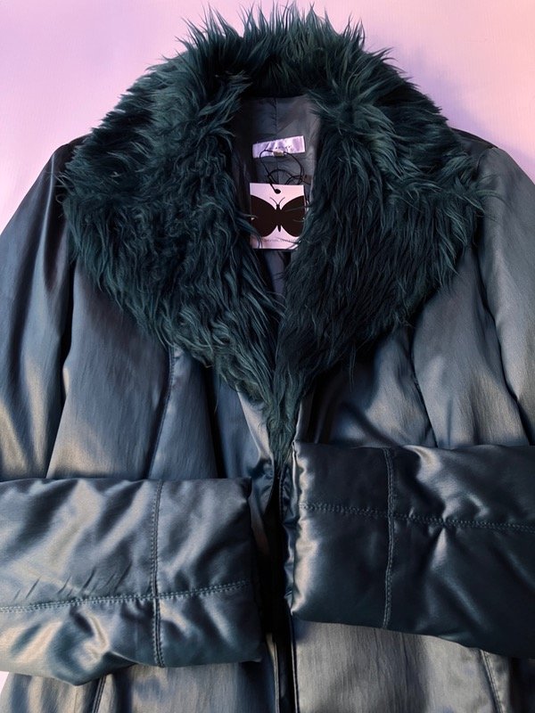 Tapado vintage 2000s liviano de símil raso y piel sintética