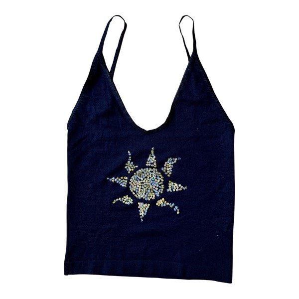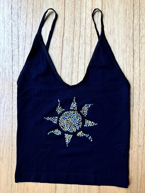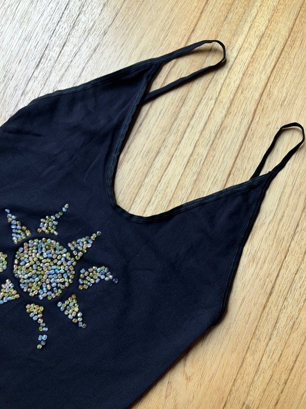 Top color negro de nylon y spandex con detalles de mostacillas , elástico en espalda y cintura